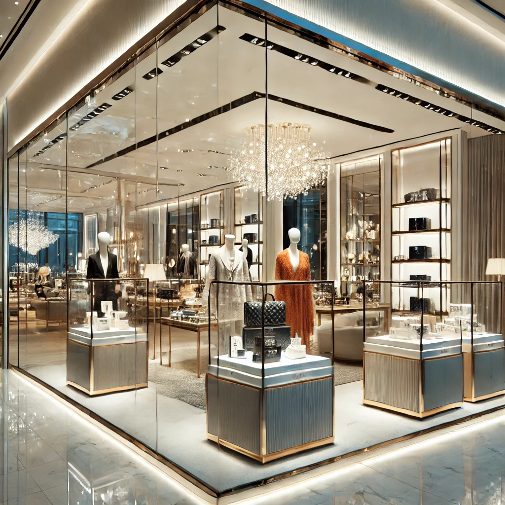 - Organização e sofisticação: Ao utilizar vitrines e expositores de vidro, a loja transmite uma imagem de organização e qualidade, elevando a experiência do cliente.